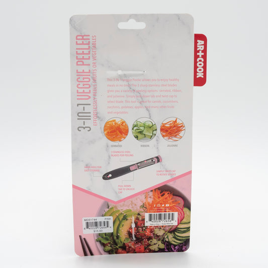 Art and Cook 3-in-1 Veggie Peeler – Stainless Steel Blades for Smooth, Julienne & Serrated Cuts