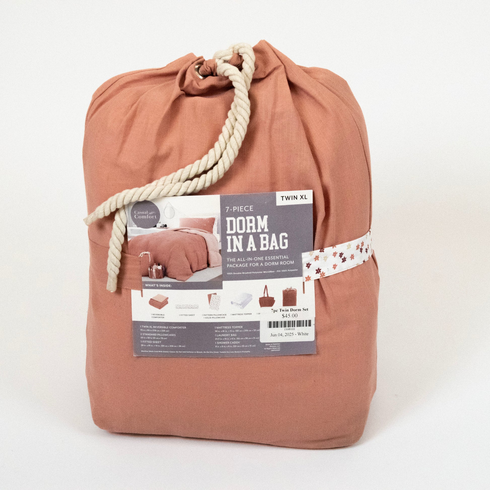 Transform your dorm room into a cozy, stylish retreat with this 7-Piece Twin XL Dorm in a Bag from Casual Comfort. Designed as the ultimate all-in-one bedding solution for college students, this set includes everything you need for a comfortable and organized dorm life. Crafted from 100% double-brushed polyester microfiber with a soft, luxurious feel, it’s perfect for year-round comfort and easy care.