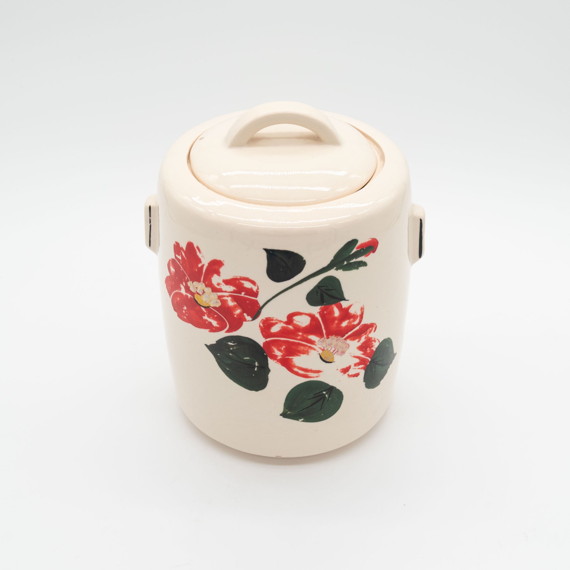 Vintage McCoy Pottery Cookie Jar – Hand-Painted Red Flower Design with Lid