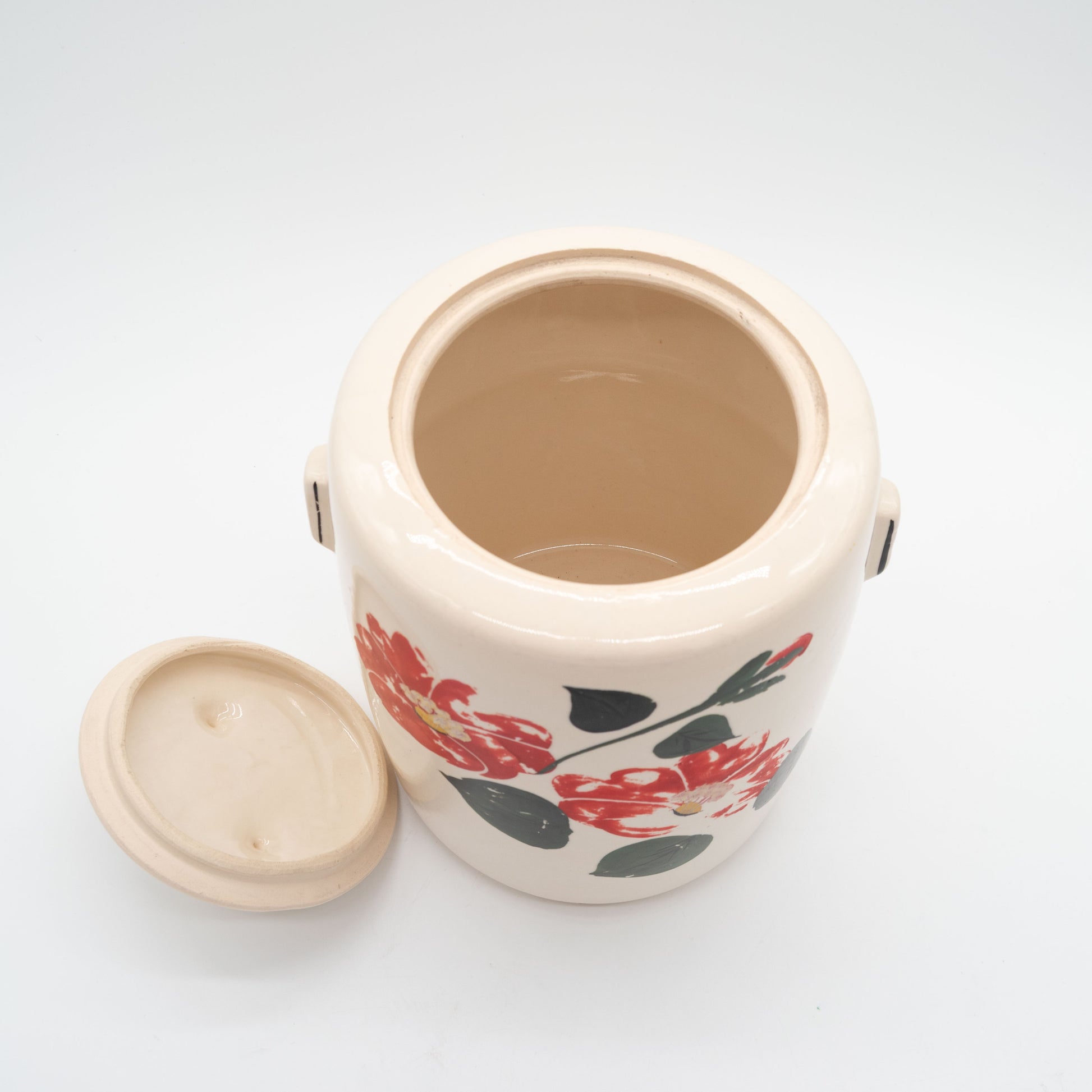 - Charming Hand-Painted Design – Vibrant red flowers and green foliage create a cheerful, nostalgic look that complements any rustic, farmhouse, or vintage kitchen decor.