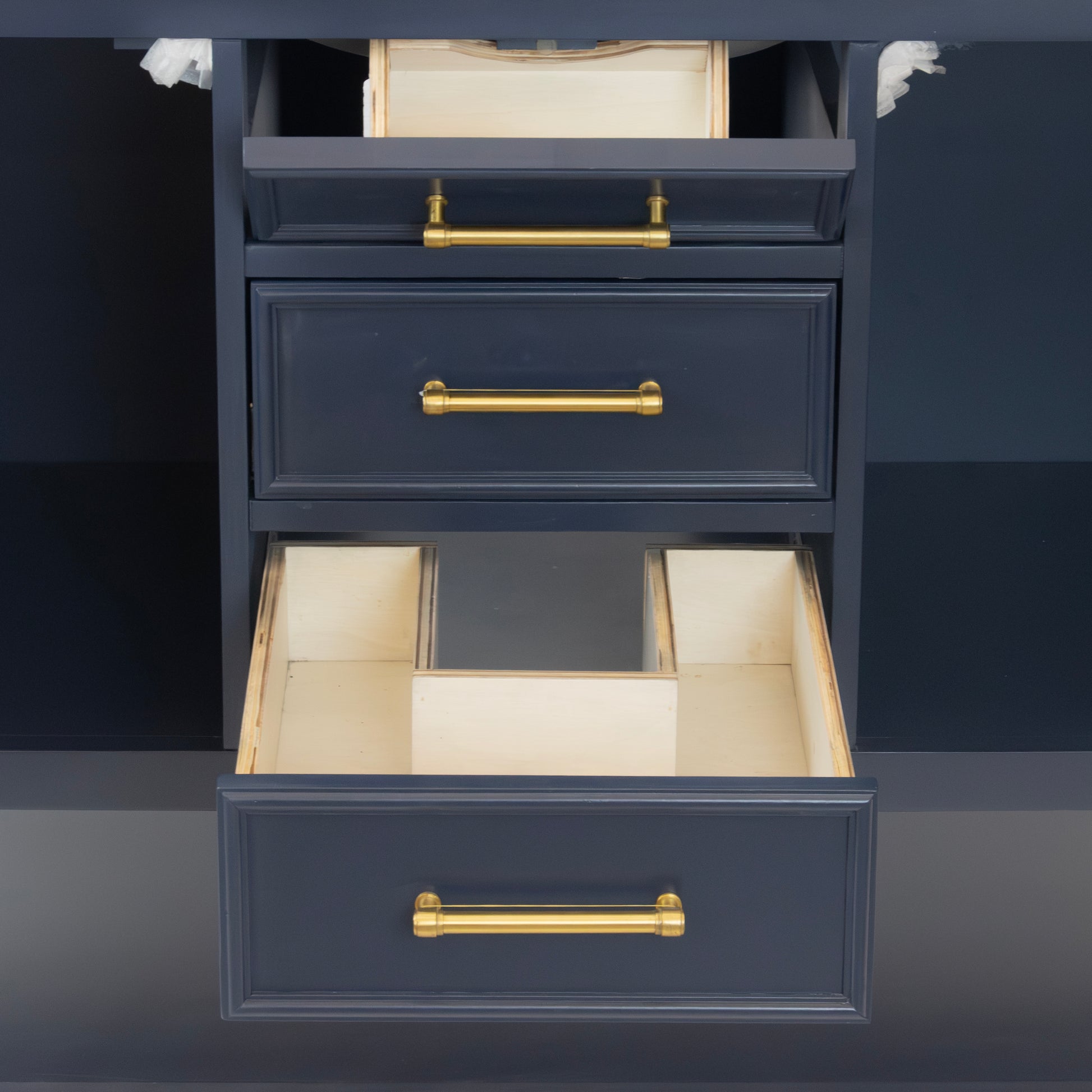 - Hardware: Gold handles and pulls for a touch of luxury