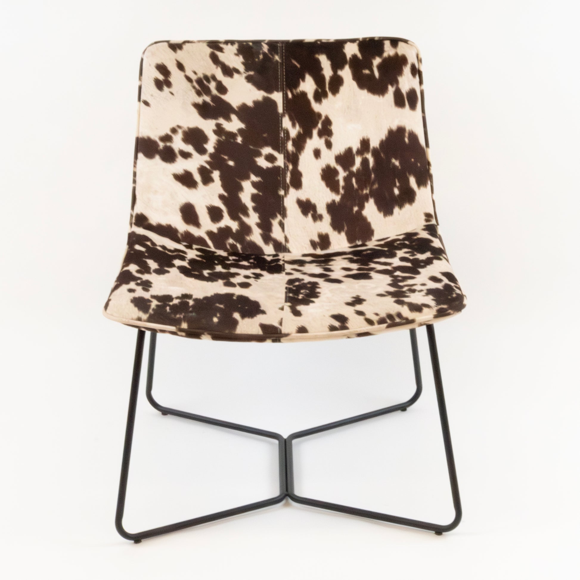 Make a bold statement with this cowhide upholstered accent chair, where modern design meets rustic character. Featuring genuine cowhide upholstery with natural variation, this chair brings warmth, texture, and one-of-a-kind style to any space. The sleek, powder-coated metal base adds a contemporary edge while providing sturdy, everyday support.