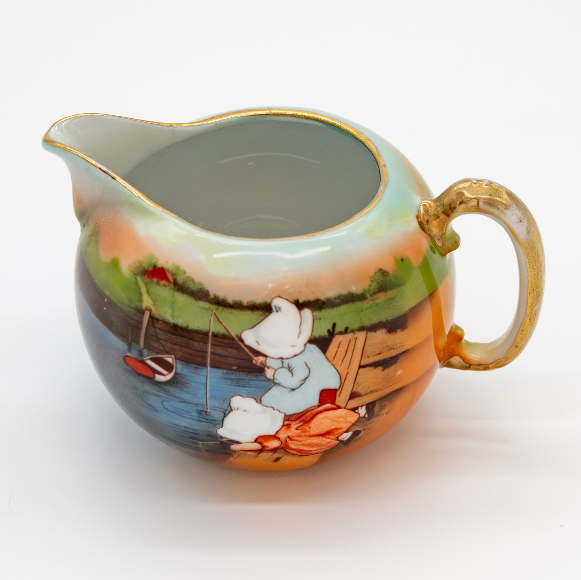 Discover a rare and delightful piece of vintage porcelain with this Royal Bayreuth Sunbonnet Babies Creamer, crafted in Bavaria, Germany. Known for their fine attention to detail, Royal Bayreuth’s hand-painted porcelain pieces are highly sought after by collectors. This charming creamer features the Sunbonnet Babies in a peaceful lakeside scene, complete with a sailboat and a beautiful countryside backdrop.