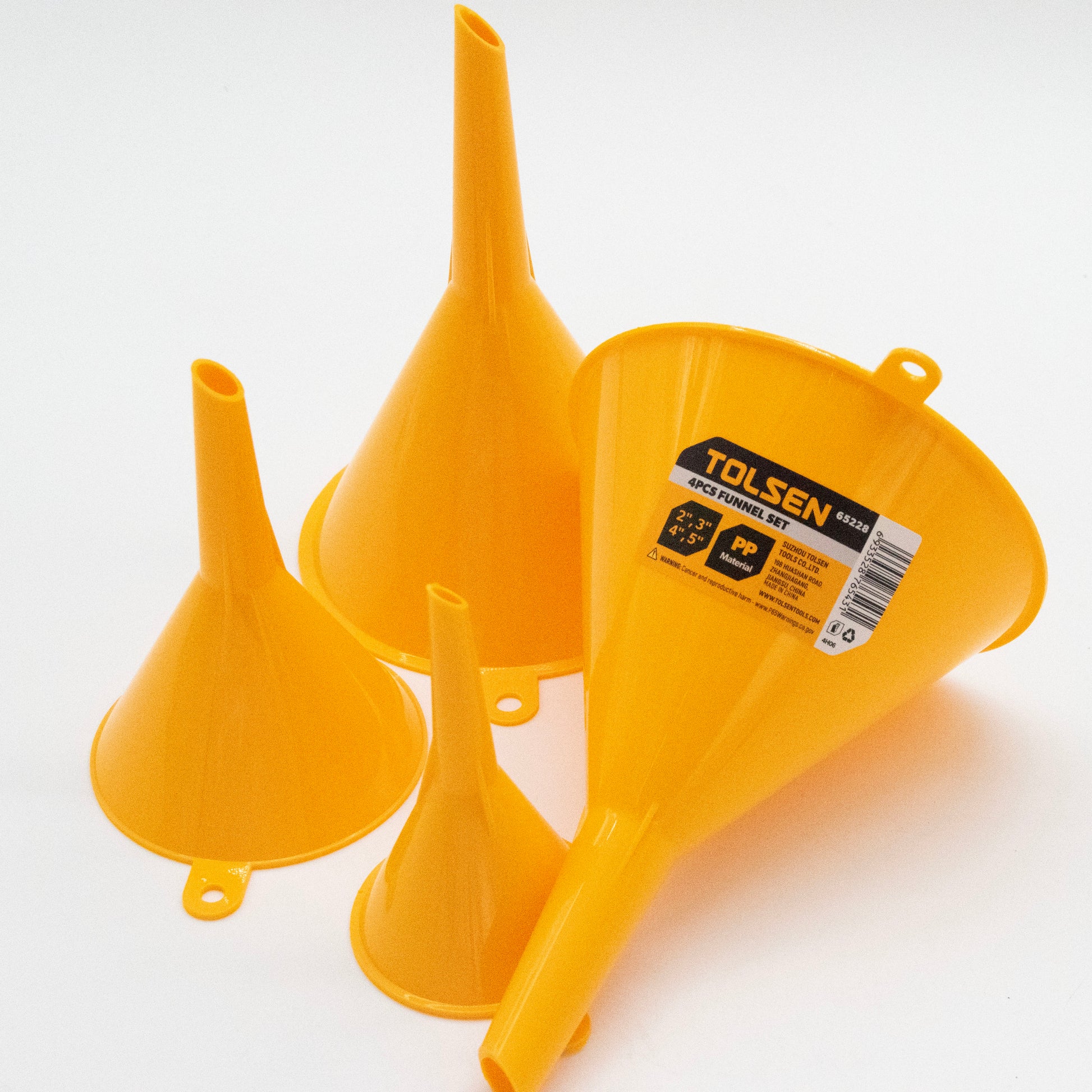 Tolsen 4-Piece Funnel Set u2013 Durable Plastic Funnels for Automotive, Kitchen, and Workshop Use