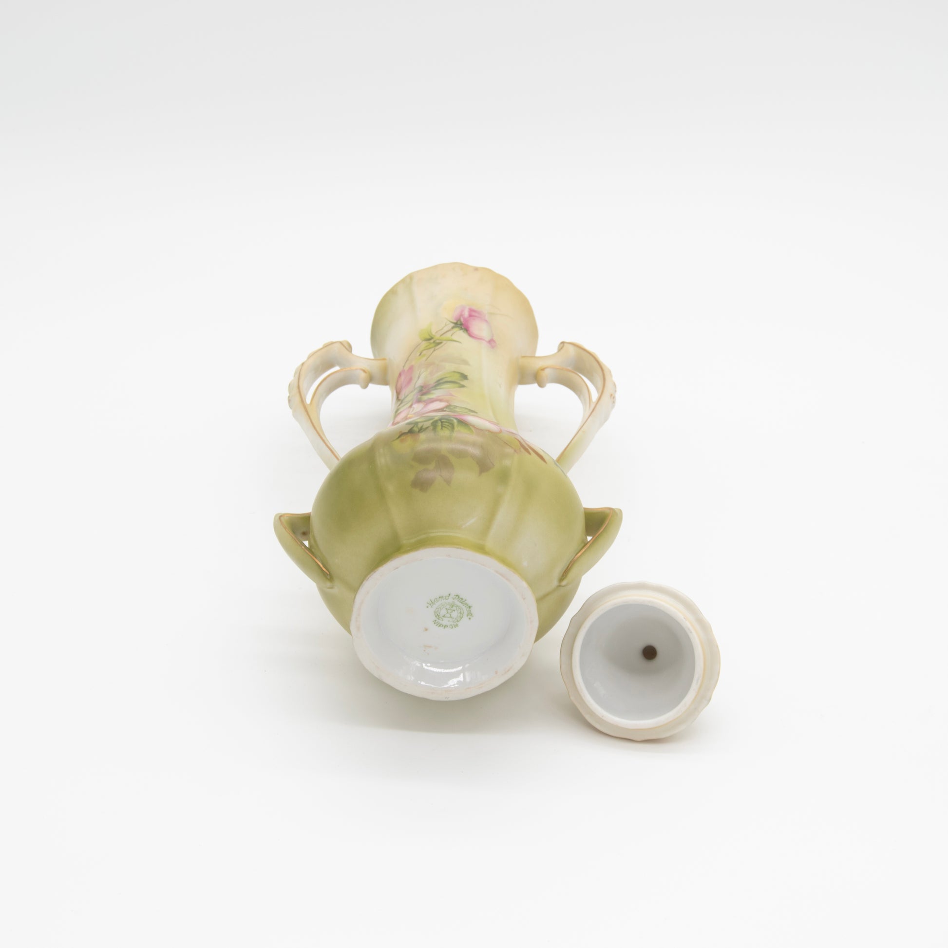 Vintage Hand-Painted Nippon Vase with Lid – Victorian Floral Decor